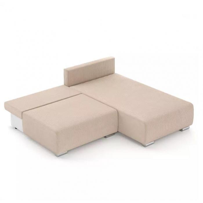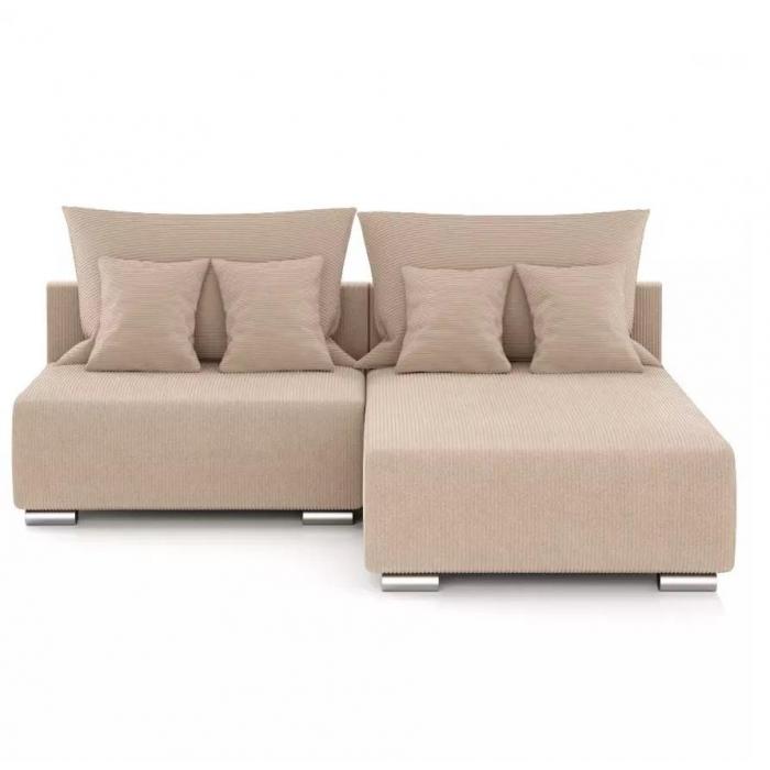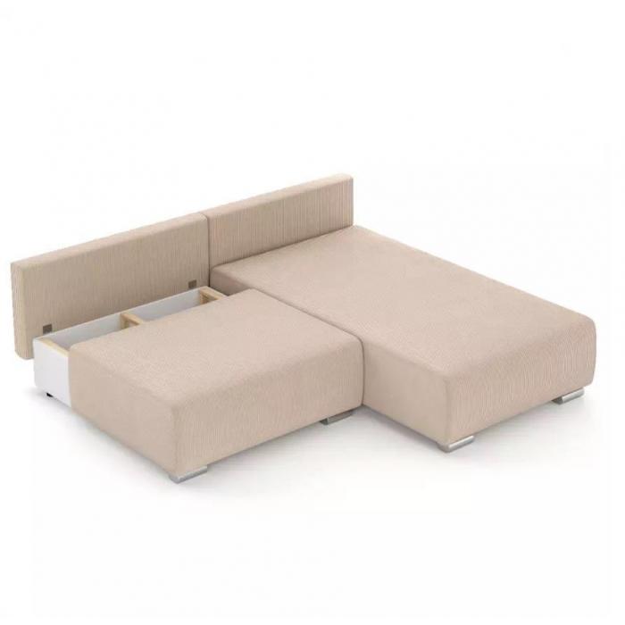 Narożnik Rich został pokryty tkaniną z funkcją spania typu DL- jest to szybki, prosty i wygodny sposób rozkładania. Jest jednym z najbardziej popularnych systemów rozkładania, który jest wykorzystywany w narożnikach. Polega on na lekkim podniesieniu i wysunięciu siedziska, a następnie należy złożyć oparcie. Pojemnik, do którego można schować pościel, dodatkowe koce czy też poduszki. Po rozłożeniu to okazjonalne miejsce do spania o wymiarach 150x203 cm. W siedzisku zastosowano sprężynę falistą, która dostosowuje się do ciężaru i kształtu ciała, zapewniając tym samym wysoki komfort siedzenia. Ten niepowtarzalny mebel wypoczynkowy stworzono z myślą o funkcjonalności i eleganckim wyglądzie. Narożnik dostępny w wersji prawostronnej i lewostronnej.