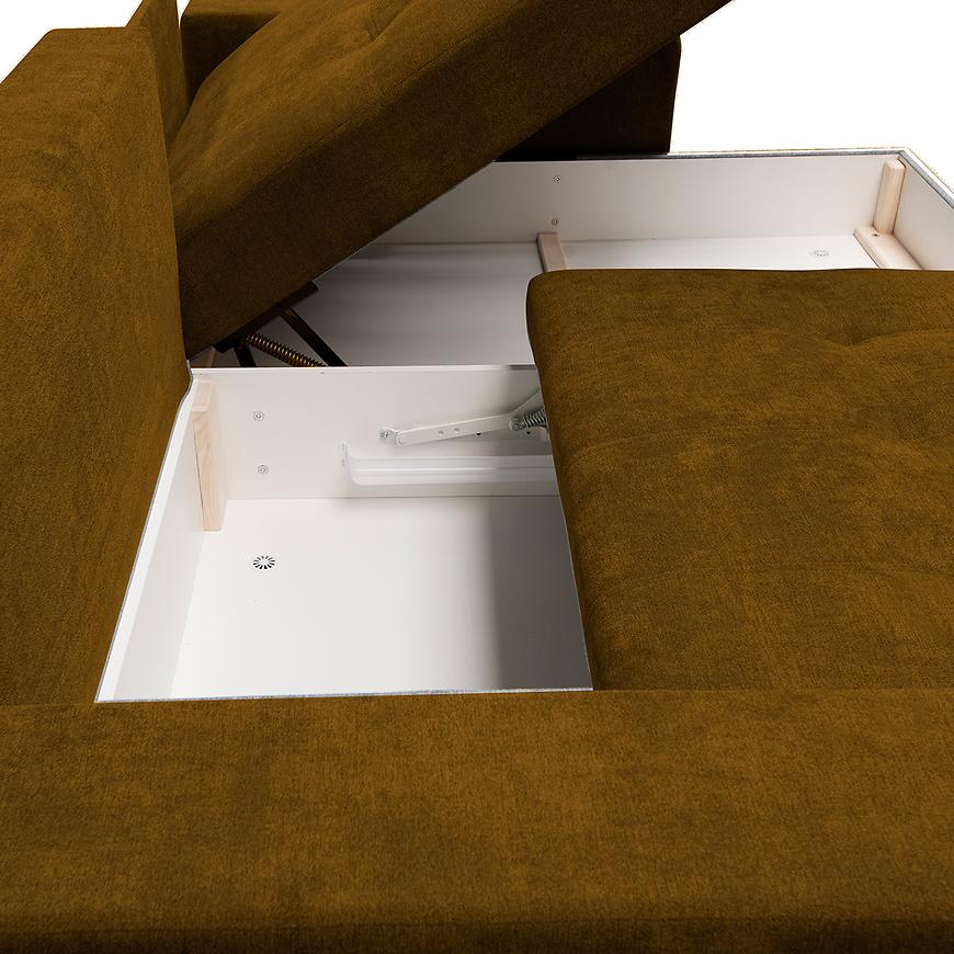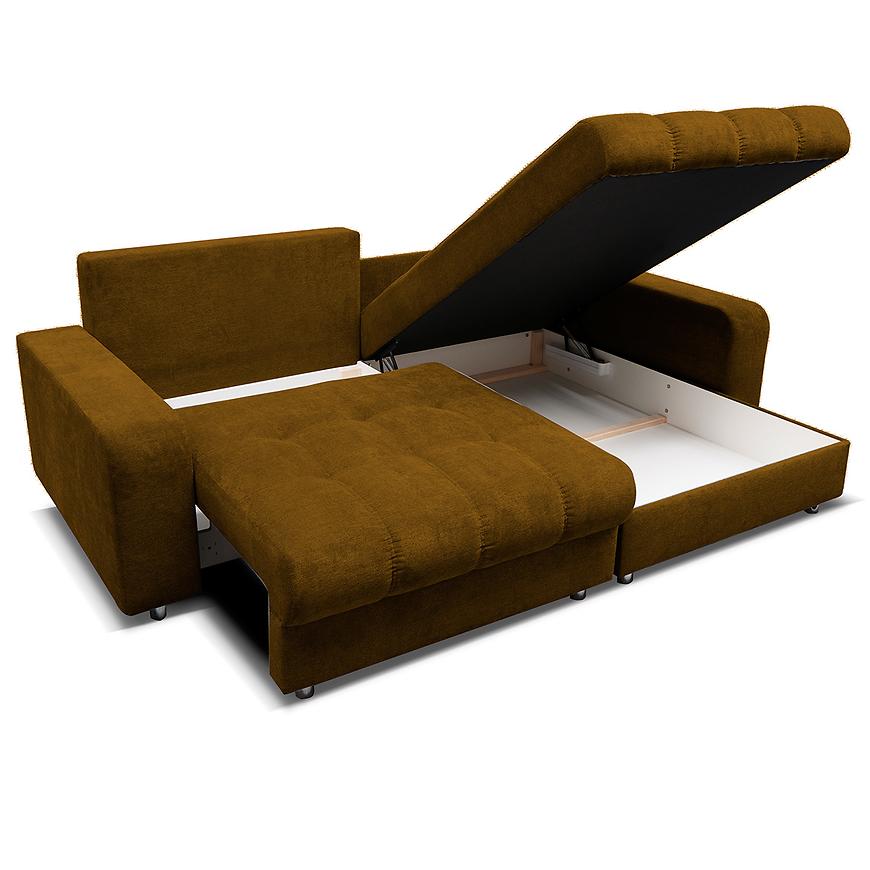 Tapicerka z miękkiej tkaniny gwarantuje przyjemne w dotyku siedzenie. Wypełnienie siedziska sprężyną falistą zapewnia wygodę i trwałość przez wiele lat. To mebel, który nie tylko dobrze wygląda, ale także jest przyjazny dla Twojego ciała. Narożnik Rodos jest wyposażony w funkcję spania, co czyni go doskonałym rozwiązaniem, gdy przyjmujesz gości, po rozłożeniu to okazjonalne miejsce do spania 158x203 cm. Dodatkowym atutem jest schowek na pościel oraz dwa pojemniki na pościel. To idealne miejsce do przechowywania pościeli i innych rzeczy, co pozwoli na utrzymanie porządku w salonie. Narożnik jest wyposażony w srebrne nogi, które dodają mu elegancji i stabilności. Jego nowoczesny design sprawia, że idealnie wpasuje się w różne aranżacje wnętrz.