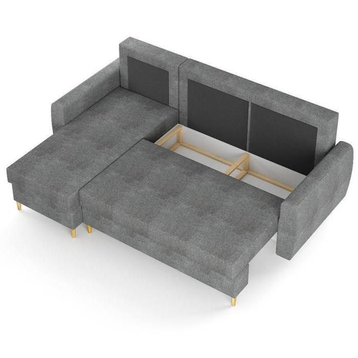Mały narożnik Romeo to elegancja, wygoda i funkcjonalność. Ponadczasowy i uniwersalny odcień sprawia, że szary narożnik łatwo wkomponować w różnorodne wnętrza - od bardzo klasycznych, aż po nieco bardziej awangardowe. Narożnik rozkładany to mebel idealny dla rodzin, które cenią sobie wspólny wypoczynek na sofie podczas oglądania telewizji. Narożnik z funkcją spania wyposażony w sprężyny faliste oraz wygodne oparcie zadowoli nawet najbardziej wymagających miłośników wielogodzinnych drzemek. Kanapa narożna z pojemnikiem to idealne rozwiązanie, które świetnie sprawdzi się w każdym domu. Narożnik tapicerowany możesz ustawić w salonie lub innym pomieszczeniu. Meble wypoczynkowe wyposażone w funkcję spania to doskonały wybór na długie lata.