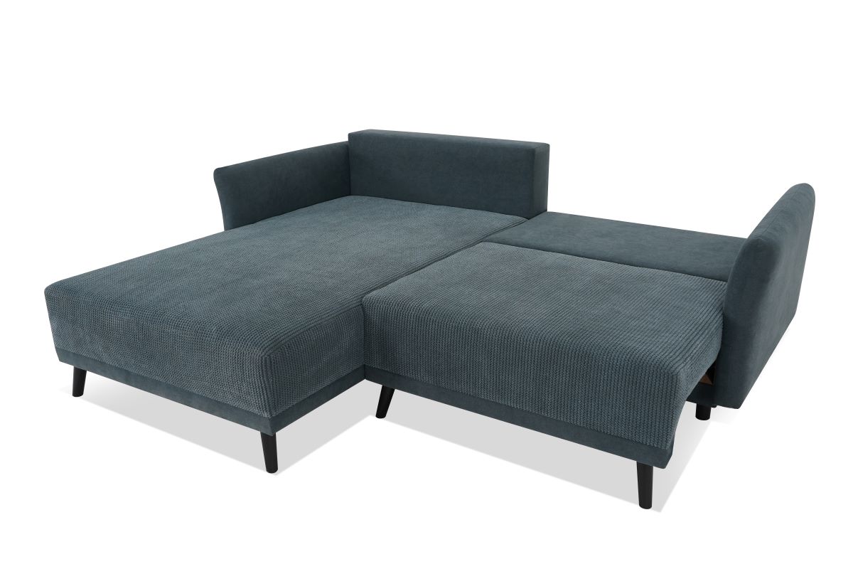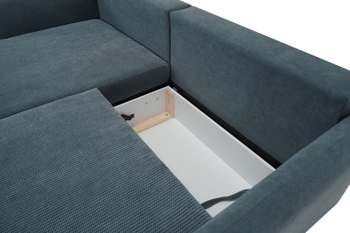 Jedną z najważniejszych cech tego narożnika jest jego funkcja spania. Dzięki innowacyjnemu systemowi rozkładania z automatycznym wspomaganiem, przejście z kanapy do wygodnego łóżka staje się łatwe i intuicyjne. W dodatku, wbudowany pojemnik na pościel pozwala zachować porządek i przechowywać dodatkowe koce czy poduszki, zawsze pod ręką, gdy są potrzebne.