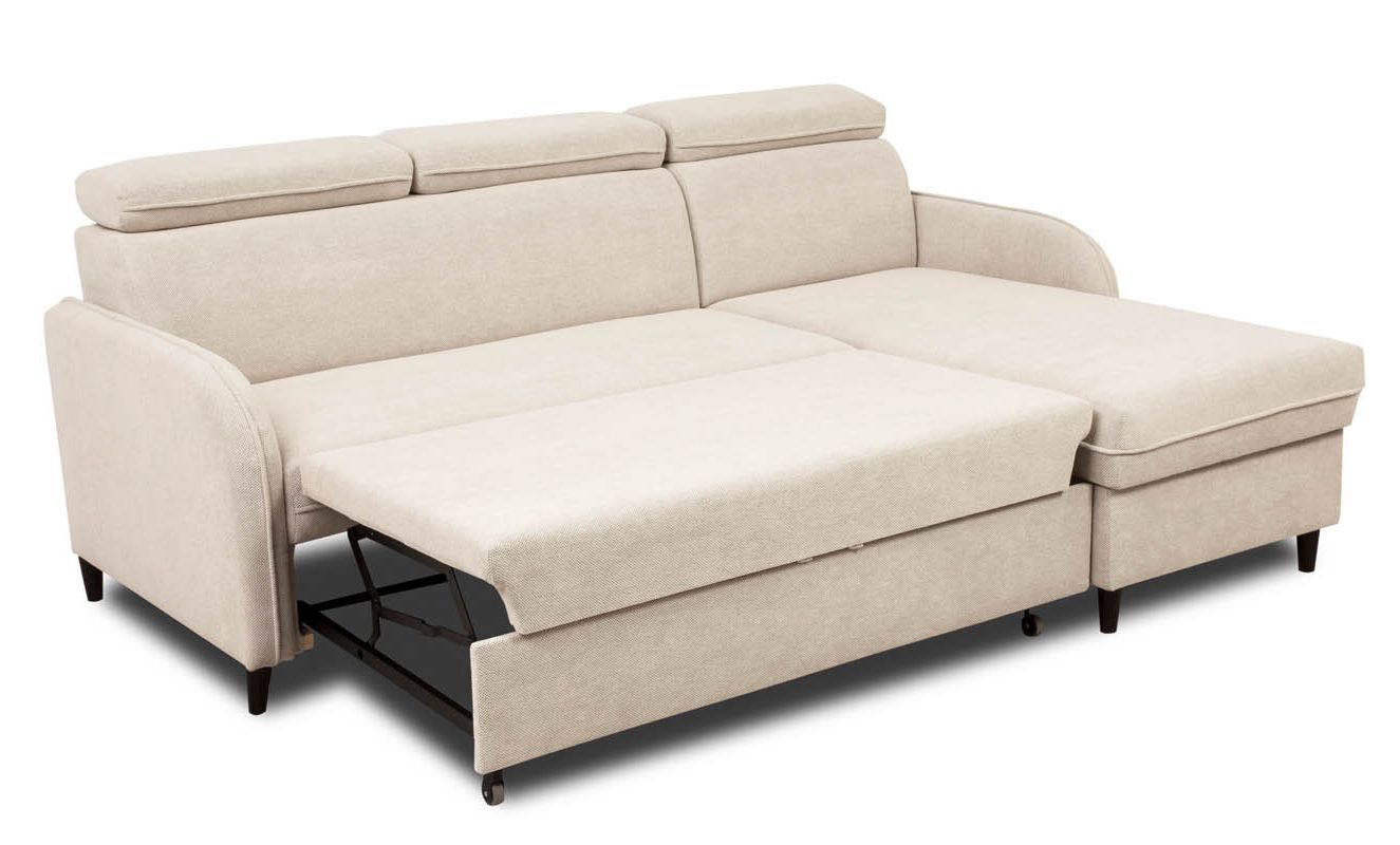 Praktycznym dodatkiem jest pojemnik na pościel, który umożliwia przechowywanie kołder, poduszek i koców. To doskonałe rozwiązanie, które pomaga utrzymać porządek w salonie i oszczędza miejsce w szafach.