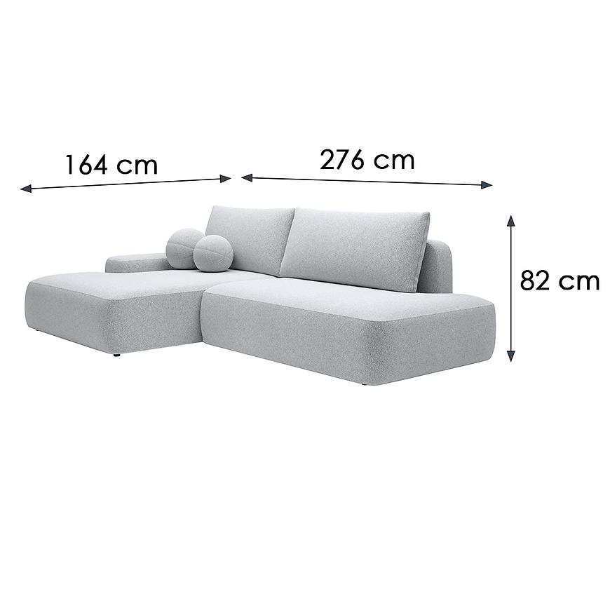 Ten narożnik w kształcie litery L dostępny jest zarówno w wersji prawej, jak i lewej, co pozwala idealnie dopasować go do układu pomieszczenia. Mebel ma wymiary 276 cm szerokości, 82 cm wysokości i 164 cm głębokości, co czyni go przestronnym i wygodnym miejscem do relaksu, spotkań towarzyskich czy wieczornego wypoczynku z rodziną.