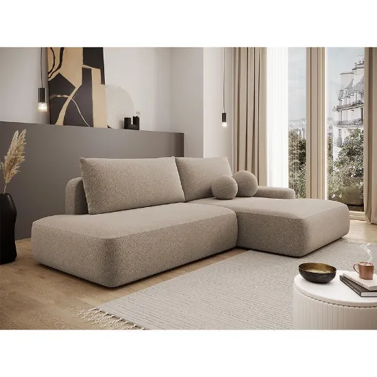Bouli O P to nowoczesny narożnik o uniwersalnym zastosowaniu – sprawdzi się zarówno w przestronnym salonie, jak i w bardziej kameralnym gabinecie. Jego przemyślany design łączy elegancki wygląd z codzienną funkcjonalnością, oferując komfortowe miejsce do wypoczynku oraz praktyczną funkcję spania.