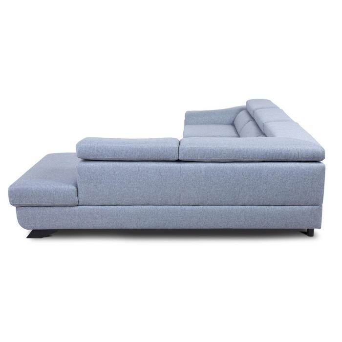 Wysokość narożnika Fario jest regulowana za pomocą zagłówków. Przy rozłożonych zagłówkach, wysokość całkowita wynosi 85 cm, co zapewnia komfortowe wsparcie dla pleców i szyi podczas siedzenia. Złożone zagłówki obniżają wysokość do 68 cm, co nadaje meblowi bardziej minimalistycznego wyglądu.