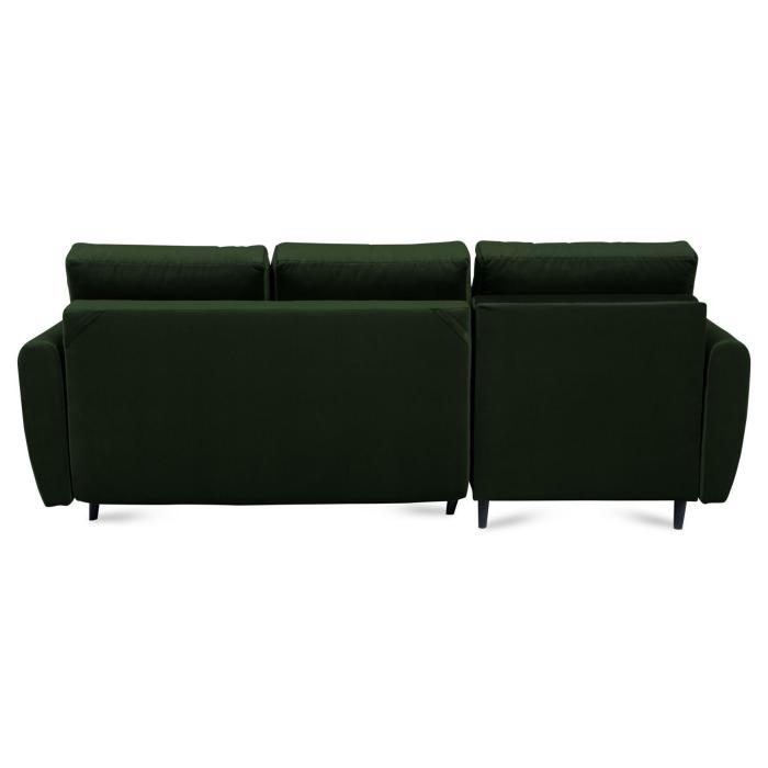 Tapicerka narożnika wykonana jest z przyjemnej w dotyku tkaniny Kronos w kolorze ciemnej zieleni. Elegancka i prosta forma narożnika oraz kształt litery L sprawiają, że wypoczynek będzie idealnym dopełnieniem wnętrza w każdym stylu. Wygodne poduszki oparciowe oraz podłokietniki nie tylko stanowią element dekoracyjny, ale poprawiają jakość wypoczynku.