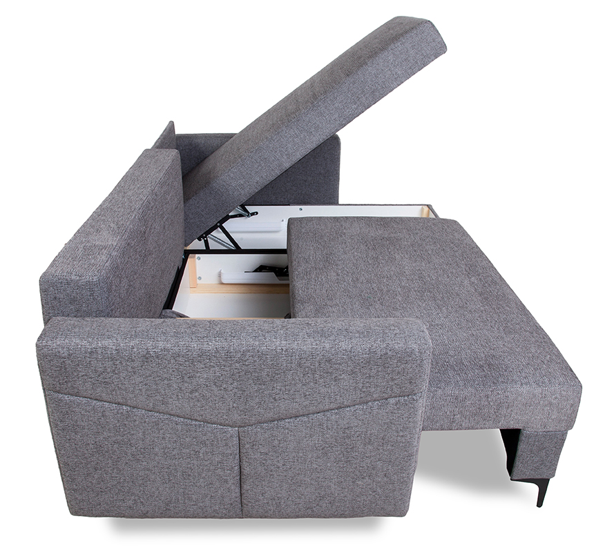 Narożnik Kairo wyposażony jest również w dwa pojemniki na pościel, które stanowią praktyczne rozwiązanie do przechowywania dodatkowych poduszek, kołder czy koców. Dzięki temu, nawet w mniejszych mieszkaniach, gdzie każdy centymetr przestrzeni jest na wagę złota, można cieszyć się porządkiem i organizacją.