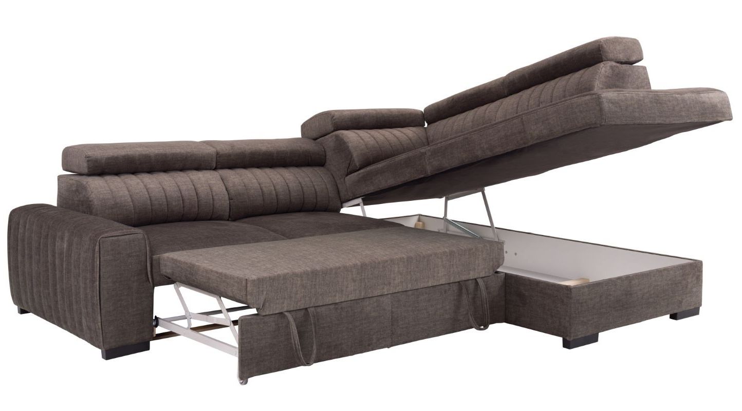 Dodatkowym atutem jest praktyczny pojemnik na pościel, umieszczony wewnątrz mebla. To idealne miejsce do przechowywania pościeli czy innych akcesoriów, co pozwala utrzymać porządek w salonie.