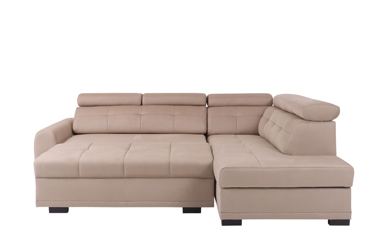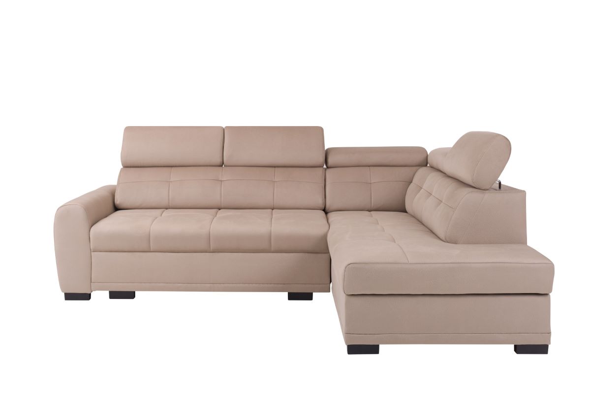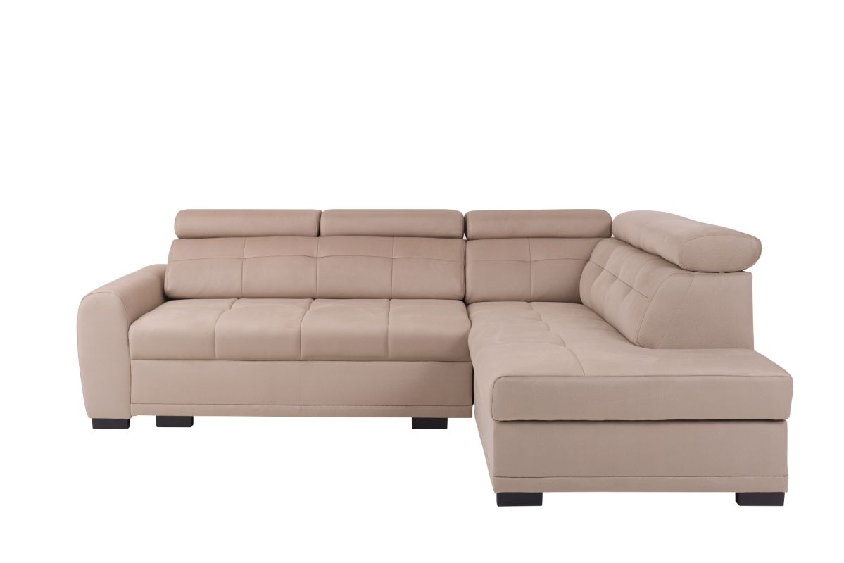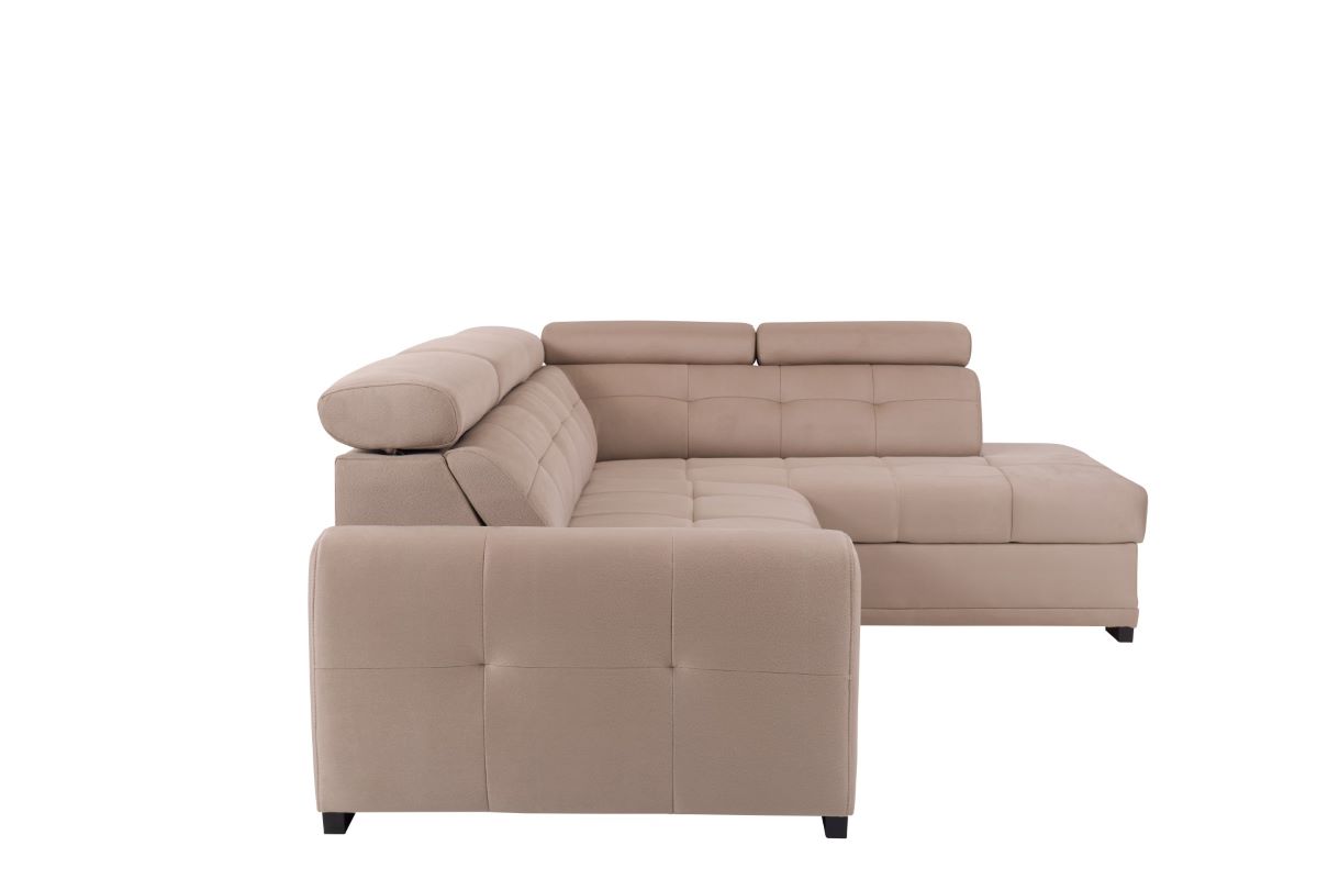 Narożnik Loris wyróżnia się nie tylko funkcjonalnością, ale także estetyką. Wykonany został z najwyższej jakości tkaniny Shell w eleganckim kolorze beżowym. Ozdobne przeszycia oraz starannie wykończone wciągi na siedzisku, oparciu i bokach narożnika nadają mu nowoczesny i stylowy charakter. Tkanina jest nie tylko trwała, ale także przyjemna w dotyku, co dodatkowo podnosi komfort korzystania z mebla.