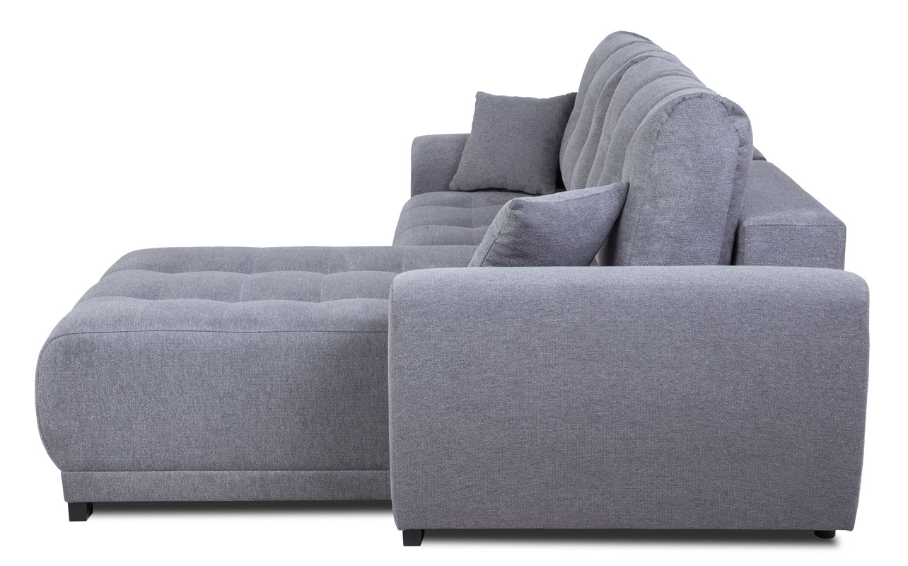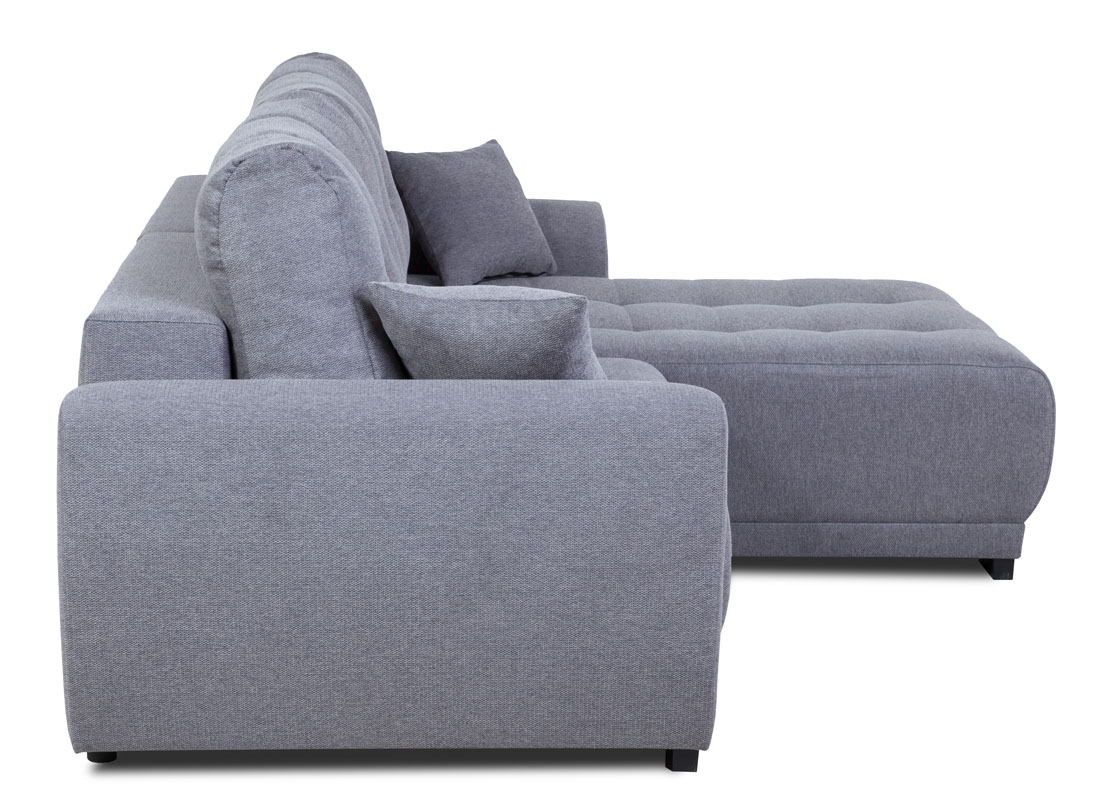 Model Pico w komplecie zawiera dwie poduszki oparciowe oraz dwie małe poduszki ozdobne, które dodają mu lekkości i stylowego charakteru. Całość została wykonana z wytrzymałej tkaniny Rimo o eleganckim, popielatym kolorze, nadając pomieszczeniu subtelnego uroku. Ozdobne przeszycia i wciągi na siedzisku oraz poduszkach oparciowych dodają narożnikowi Pico wyjątkowego, designerskiego akcentu.