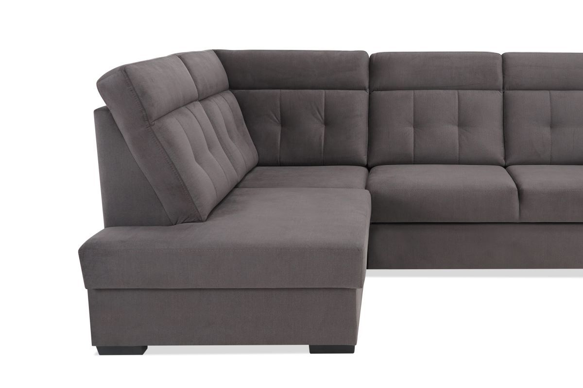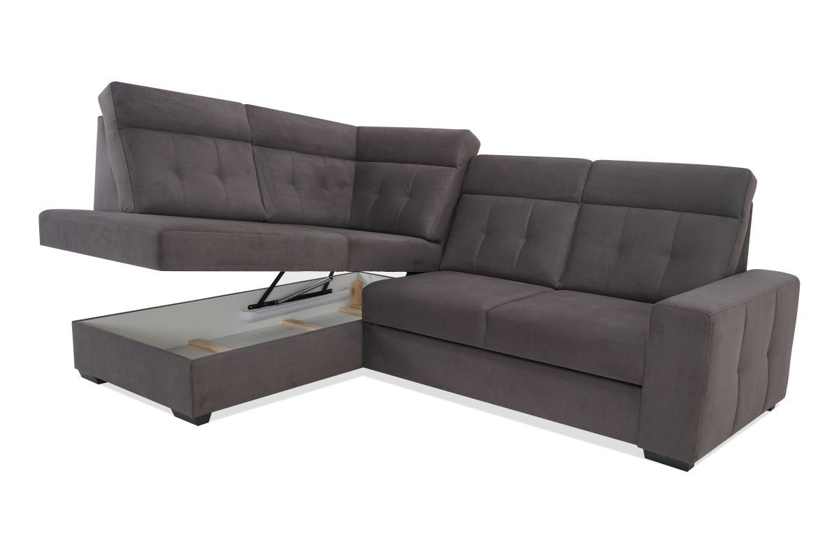 Ponadto, narożnik Piero posiada praktyczny pojemnik na pościel, co sprawia, że utrzymanie porządku w Twoim salonie staje się prostsze niż kiedykolwiek wcześniej. Teraz możesz przechowywać koce, poduszki i inne niezbędne rzeczy bezproblemowo i estetycznie.