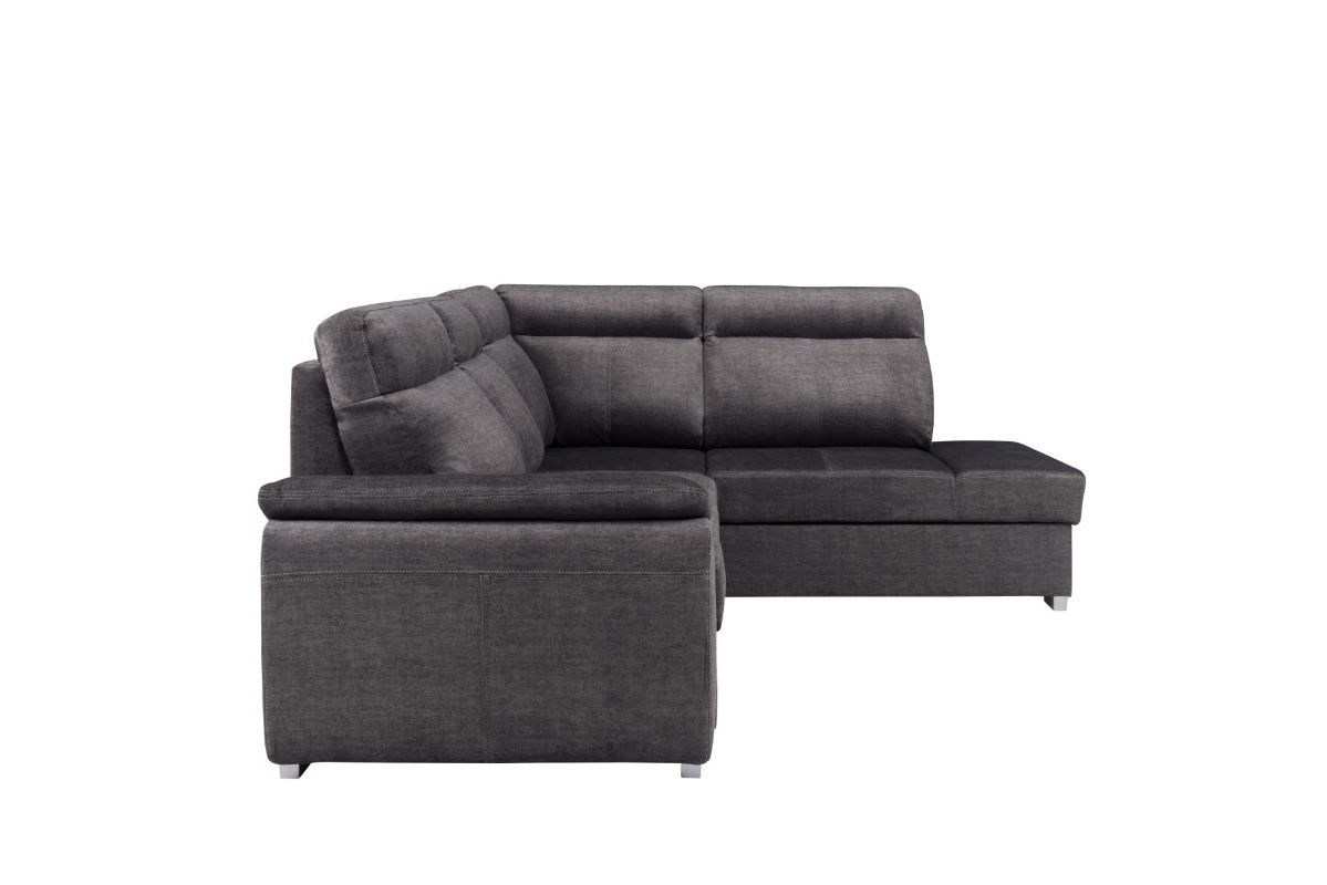 Narożnik Prestige został wykonany z wysokiej jakości tkaniny Vogue w kolorze grafitowym, co nadaje mu nowoczesny i stylowy wygląd. Plecy narożnika są starannie tapicerowane, co dodaje mu prestiżowego charakteru. Tkanina jest nie tylko estetyczna, ale także łatwa w utrzymaniu czystości, co sprawia, że narożnik będzie świetnym wyborem dla rodzin z dziećmi czy zwierzętami.