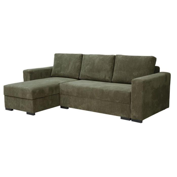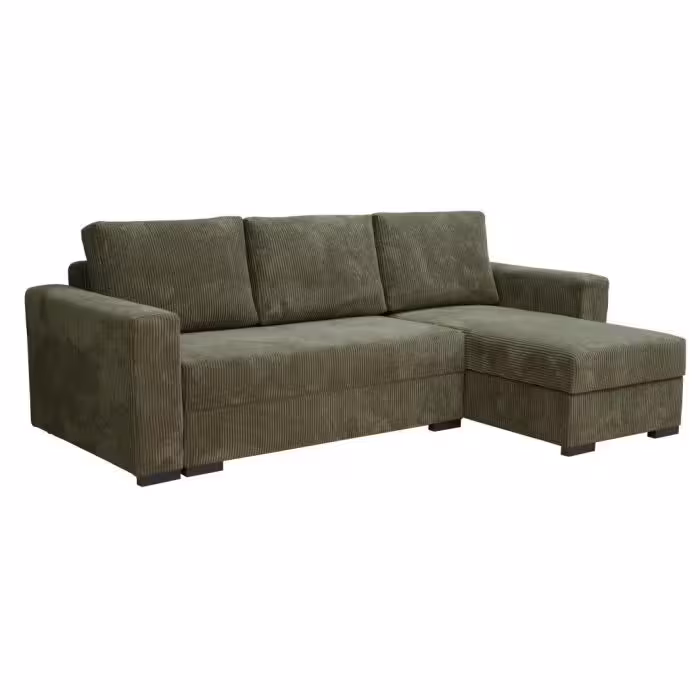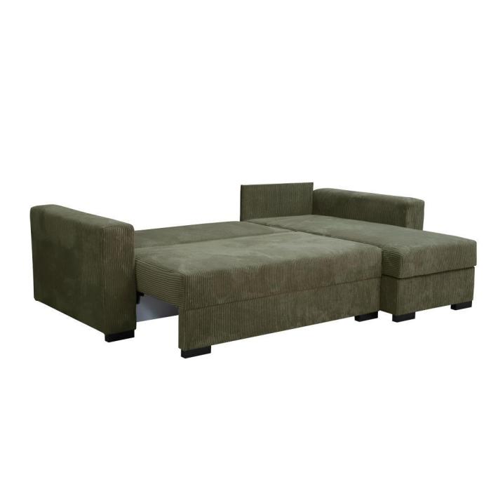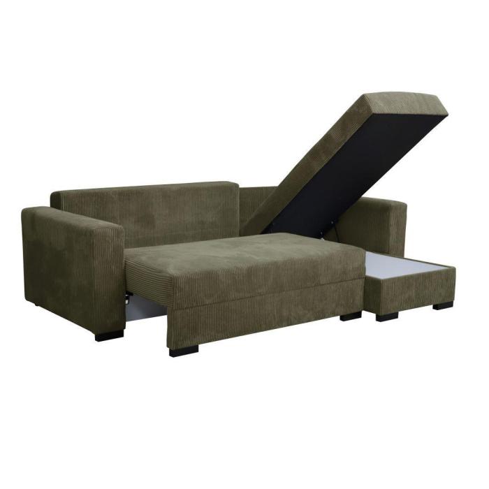 Narożnik został wyposażony w system rozkładania DL. Sposób rozkładania DL to prosty i szybki system najczęściej spotykany w narożnikach - spod siedziska wysuwamy szufladę, a następnie kładziemy oparcie tworząc równą powierzchnię spania.