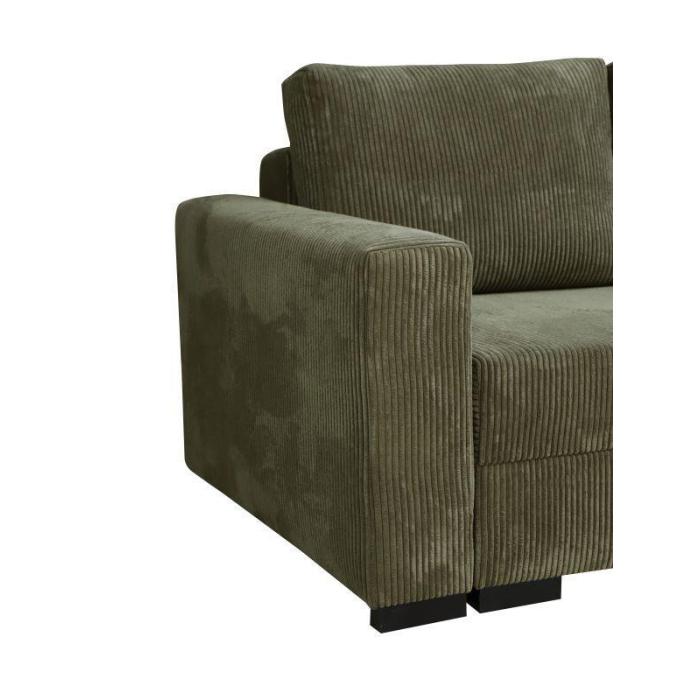 Sofa narożna Verso Lux posiada dwa pojemniki na pościel, w których zmieszczą się kołdry i inne tekstylia, zachowując przy tym porządek w pomieszczeniu. Narożnik z funkcją spania wyposażony w sprężyny faliste oraz piankę wysokoelastyczną T-30/38. Wygodne oparcie zadowoli nawet najbardziej wymagających miłośników wielogodzinnych drzemek. Wysokość siedziska wynosi 42 cm.