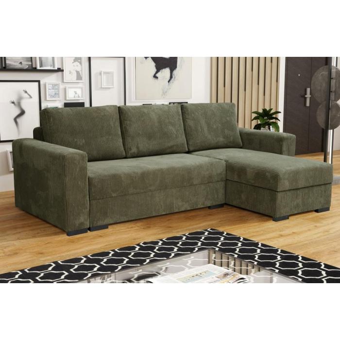 Nowoczesny narożnik Verso Lux to wygoda i funkcjonalność. Wysoki komfort zapewnia duża powierzchnia do siedzenia jak i do spania, po rozłożeniu otrzymujemy powierzchnia spania o wymiarach 140x205 cm. Za wygodne oparcie służą trzy, luźne poduszki oparciowe z zamkiem. Duży narożnik rozkładany to mebel idealny dla rodzin, które cenią sobie wspólny wypoczynek na sofie podczas oglądania telewizji. Kanapa narożna z pojemnikiem to idealne rozwiązanie, które świetnie sprawdzi się w każdym domu. Kanapy narożne możesz ustawić w salonie lub innym pomieszczeniu. Meble wypoczynkowe z funkcją spania to doskonały wybór na długie lata.