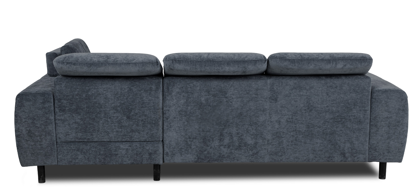 Nowoczesna forma narożnika z regulowanymi zagłówkami dobrze wpisuje się w aranżacje minimalistyczne, loftowe oraz współczesne wnętrza inspirowane prostotą i funkcjonalnością.