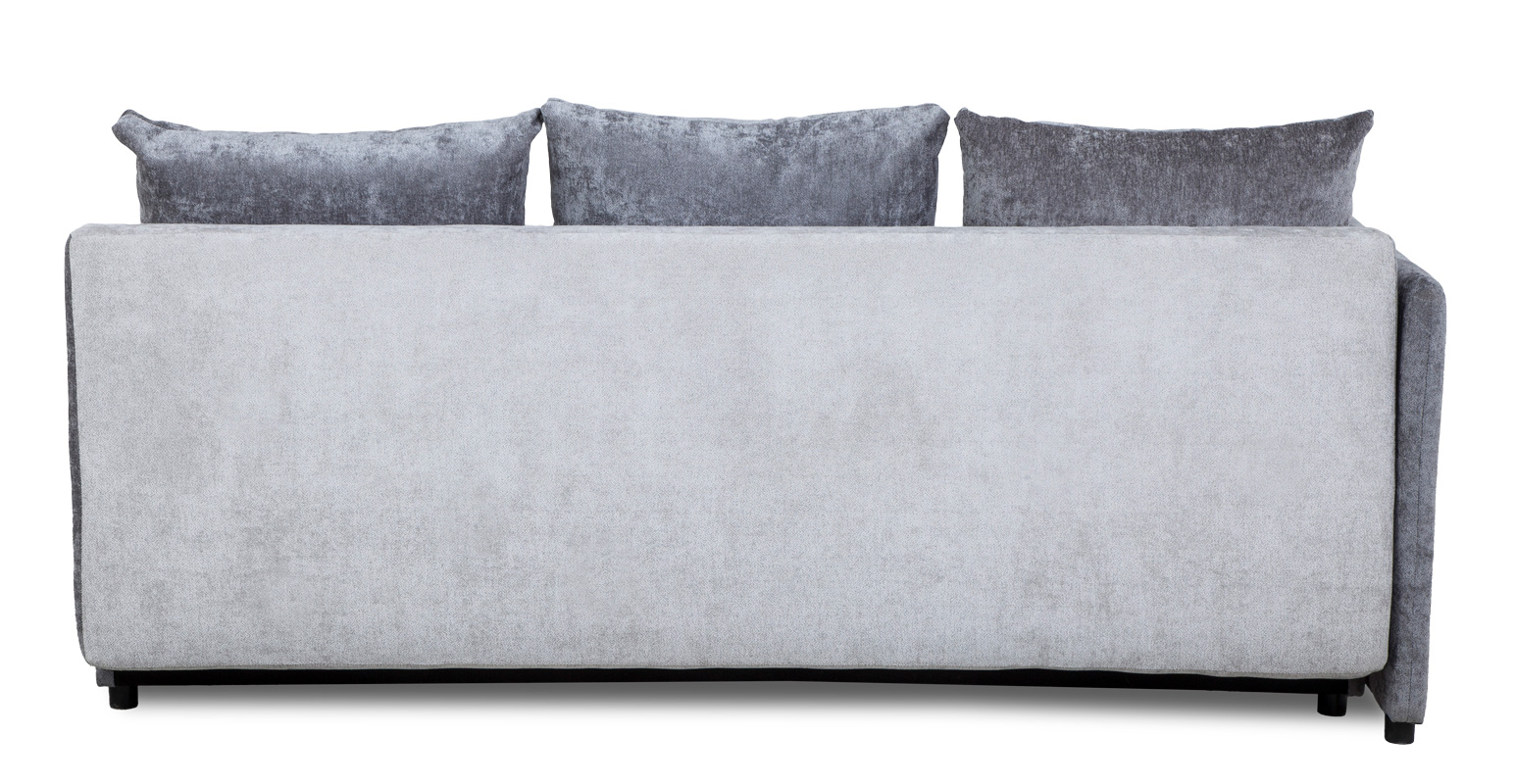 Takie połączenie materiałów jest często stosowane w meblach przeznaczonych do codziennego użytkowania – zarówno jako sofa wypoczynkowa, jak i miejsce do spania.