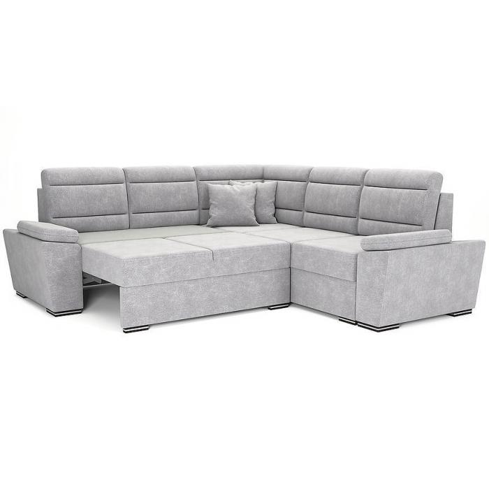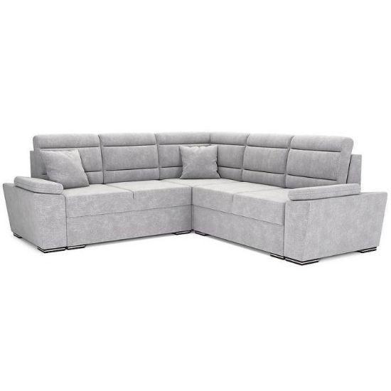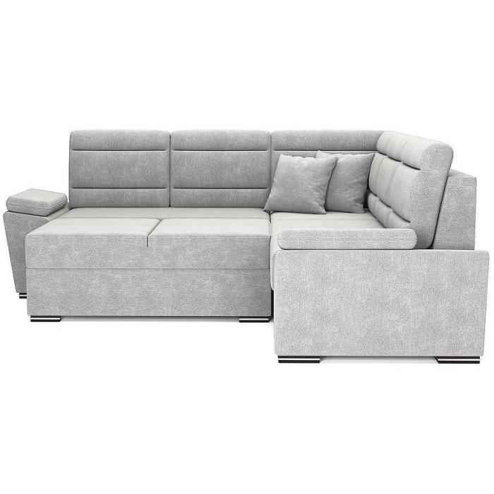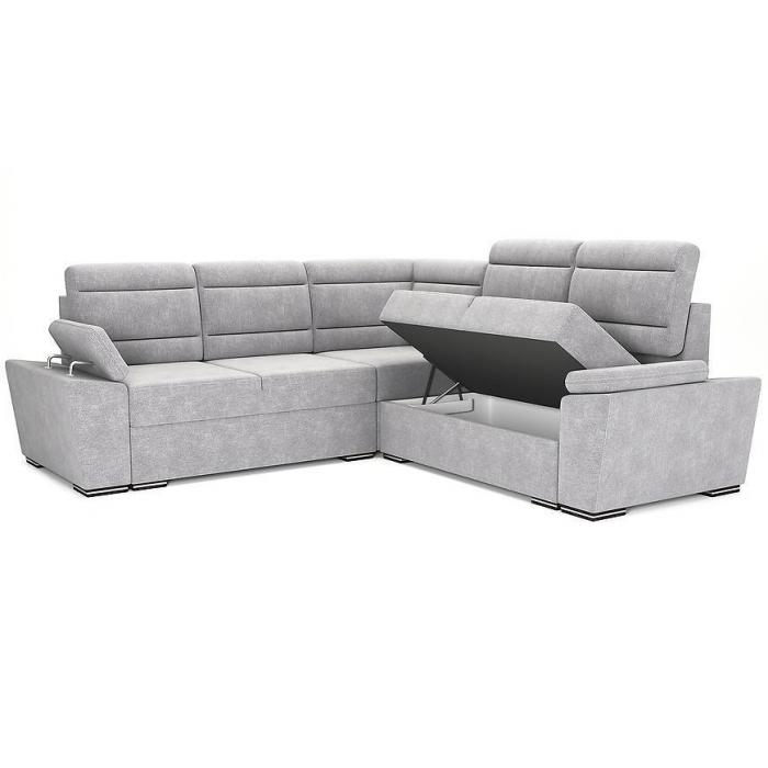 Sofa narożna posiada pojemnik na pościel, w którym zmieszczą się kołdry zachowując porządek w pomieszczeniu. Narożnik z funkcją spania wyposażony w wygodne oparcie oraz regulowany podłokietnik zadowoli nawet najbardziej wymagających miłośników wielogodzinnych drzemek.