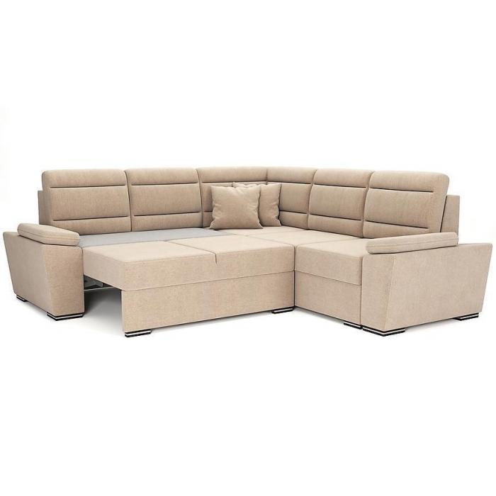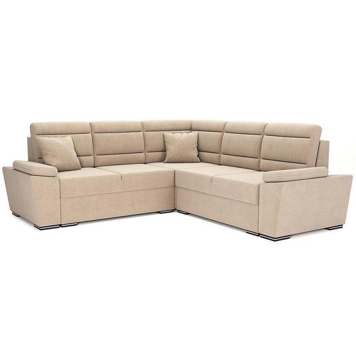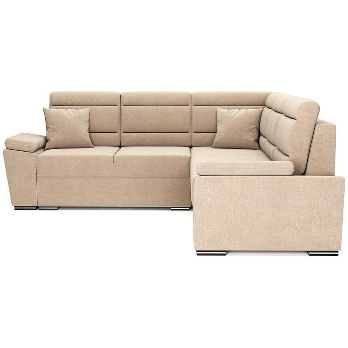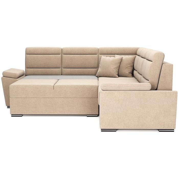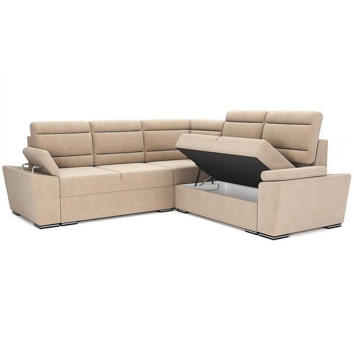 Sofa narożna posiada pojemnik na pościel, w którym zmieszczą się kołdry zachowując porządek w pomieszczeniu. Narożnik z funkcją spania wyposażony w sprężyny bonell, wygodne oparcie oraz regulowany podłokietnik zadowoli nawet najbardziej wymagających miłośników wielogodzinnych drzemek.