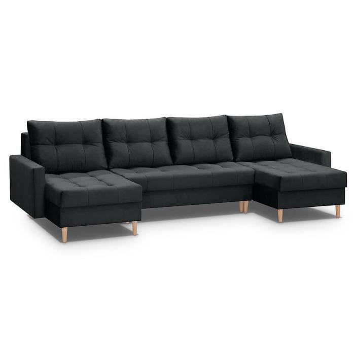 Narożnik Scandi z funkcją spania został pokryty tkaniną. Prostotę i łatwość użytkowania gwarantuje system rozkładania typu DL. Jest to szybki, prosty i wygodny sposób rozkładania. Jest jednym z najbardziej popularnych systemów rozkładania, który jest wykorzystywany w narożnikach. Po rozłożeniu powierzchnia spania wynosi 120x270 cm. Mebel posiada trzy pojemniki, do których można schować pościel, dodatkowe koce czy też poduszki. W siedzisku zastosowano sprężynę bonell, która dostosowuje się do ciężaru i kształtu ciała, zapewniając tym samym wysoki komfort siedzenia. Ten niepowtarzalny mebel wypoczynkowy stworzono z myślą o funkcjonalności i eleganckim wyglądzie. Narożnik dostępny w wersji uniwersalnej.