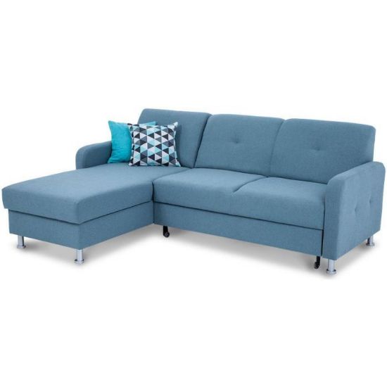 Sofa narożna posiada pojemnik na pościel, w którym zmieszczą się kołdry zachowując porządek w pomieszczeniu.