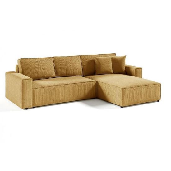 Kanapa narożna z kolekcji Sekwana jest w kształcie litery L i świetnie wpasuje się zarówno do pokoju dziennego jak i salonu. Tył narożnika jest tapicerowany, dzięki czemu może stać wolno nawet na środku salonu. Wypełnienie materaca to sprężyny faliste i pianka poliuretanowa T-28 oraz T-25. Narożnik jest uniwersalny, co sprawia, że bez problemu zmienisz stronę z lewej na prawą. Zastosowana tkanina POSO to miękki sztruks w grube prążki.