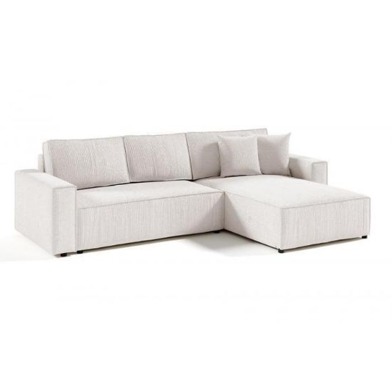 Kanapa narożna z kolekcji Sekwana jest w kształcie litery L i świetnie wpasuje się zarówno do pokoju dziennego jak i salonu. Tył narożnika jest tapicerowany, dzięki czemu może stać wolno nawet na środku salonu. Wypełnienie materaca to sprężyny faliste i pianka poliuretanowa T-28 oraz T-25. Narożnik jest uniwersalny, co sprawia, że bez problemu zmienisz stronę z lewej na prawą. Zastosowana tkanina POSO to miękki sztruks w grube prążki.