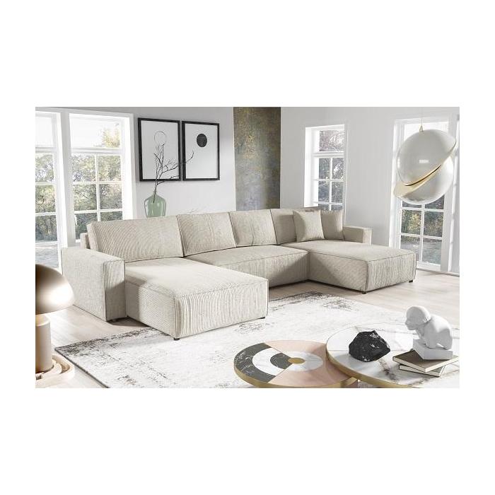 Narożnik Sekwana został pokryty tkanina POSO - ultramiękki sztruks w grube prążki. Prostotę i łatwość użytkowania gwarantuje automat ułatwiający rozkładanie i system rozkładania rolkowy. Jest to szybki, prosty i wygodny sposób rozkładania. Po rozłożeniu powierzchnia spania wynosi 344x140 cm. Meble posiada pojemnik, do którego można schować pościel, dodatkowe koce czy też poduszki. W siedzisku zastosowano sprężynę falistą + pianka poliuretanowa T-30, która dostosowuje się do ciężaru i kształtu ciała, zapewniając tym samym wysoki komfort siedzenia. Mebel można postwić na środku pomieszczenia, gdyż tył został obity tym samym materiałem. Ten niepowtarzalny mebel wypoczynkowy stworzono z myślą o funkcjonalności i eleganckim wyglądzie.