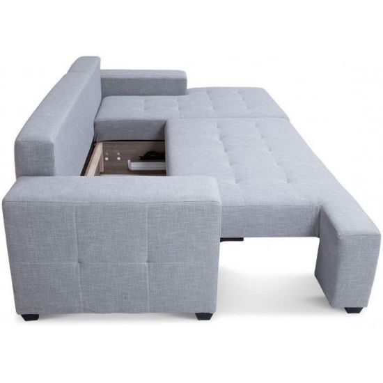 Kanapa wyposażona została w pojemnik na pościel umieszczony pod spodem siedziska. Do pojemnika możemy schować kołdrę, poduszkę zapewniając ład i porządek w pomieszczeniu.