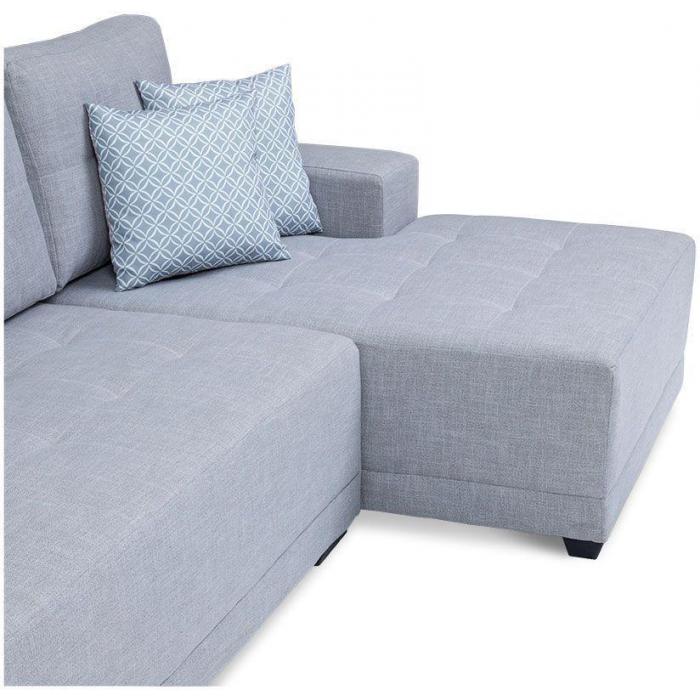 Nowoczesny narożnik Senso to elegancja, wygoda i funkcjonalność. Wysoki komfort zapewnia szerokie siedzisko, a po rozłożeniu wygodne łóżko. Duży narożnik to mebel idealny dla rodzin, które cenią sobie wspólny wypoczynek na sofie podczas oglądania telewizji. Elegancki design wzbogacają estetyczne pikowania, trzy poduszki oparciowe oraz dwie ozdobne, będące częścią zestawu. Cała kompozycja gwarantuje także wysokie walory wizualne. Narożnik Senso zapewnia komfort użytkowania dzięki sprężynom falistym znajdującym się w jego wnętrzu. Kanapa narożna z pojemnikiem to idealne rozwiązanie, które świetnie sprawdzi się w każdym domu. Narożnik tapicerowany możesz ustawić w salonie lub innym pomieszczeniu. Meble wypoczynkowe wyposażone w funkcję spania to doskonały wybór na długie lata.