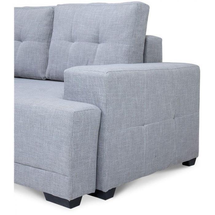 Kanapa wyposażona została w pojemnik na pościel umieszczony pod spodem siedziska. Do pojemnika możemy schować kołdrę, poduszkę zapewniając ład i porządek w pomieszczeniu.