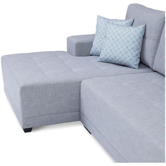 Nowoczesny narożnik Senso to elegancja, wygoda i funkcjonalność. Wysoki komfort zapewnia szerokie siedzisko, a po rozłożeniu wygodne łóżko. Duży narożnik to mebel idealny dla rodzin, które cenią sobie wspólny wypoczynek na sofie podczas oglądania telewizji. Elegancki design wzbogacają estetyczne pikowania, trzy poduszki oparciowe oraz dwie ozdobne, będące częścią zestawu. Cała kompozycja gwarantuje także wysokie walory wizualne. Narożnik Senso zapewnia komfort użytkowania dzięki sprężynom falistym znajdującym się w jego wnętrzu. Kanapa narożna z pojemnikiem to idealne rozwiązanie, które świetnie sprawdzi się w każdym domu. Narożnik tapicerowany możesz ustawić w salonie lub innym pomieszczeniu. Meble wypoczynkowe wyposażone w funkcję spania to doskonały wybór na długie lata.