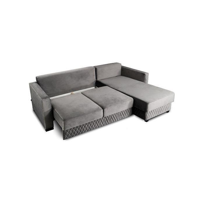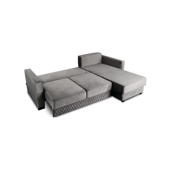 Narożnik posiada funkcję spania co zapewni dodatkowe miejsce do spania dla gości bądź domowników. Narożnik rozkładany jest do przodu, przez co zajmuje mało miejsca, co jest bardzo funkcjonalne dla osób ceniących sobie przestrzeń. Po rozłożeniu powierzchnia spania wynosi 140x205cm. Pojemnik na pościel z kolei pozwala na optymalne zagospodarowanie dostępnej przestrzeni i zachowanie porządku.