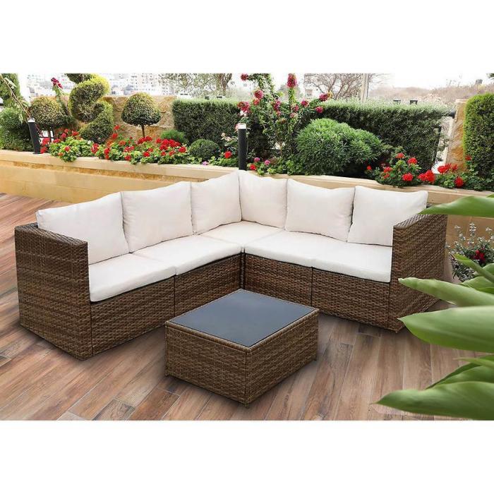 Komplet mebli technorattanowych to idealne rozwiązanie do każdego ogrodu czy na taras gdzie z przyjemnością spędzisz wszystkie letnie popołudnia i weekendy wraz ze znajomymi czy rodziną. Komplet składa się z 6 elementów. Blat stolika jest wytrzymały, wykonany bowiem ze szkła hartowanego, konstrukcja z kolei jest metalowa.