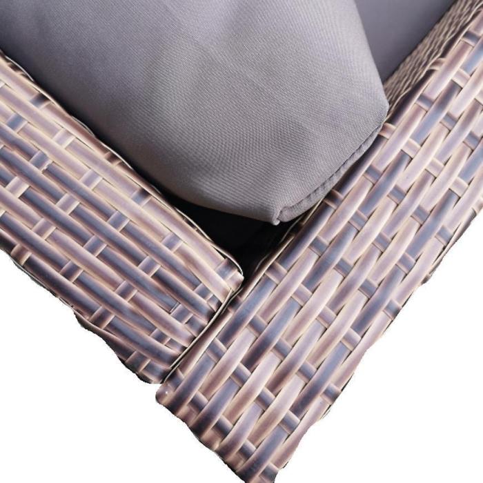 Komplet mebli technorattanowych to idealne rozwiązanie do każdego ogrodu czy na taras gdzie z przyjemnością spędzisz wszystkie letnie popołudnia i weekendy wraz ze znajomymi czy rodziną. Komplet składa się z 6 elementów. Blat stolika jest wytrzymały, wykonany bowiem ze szkła hartowanego, konstrukcja z kolei jest metalowa.