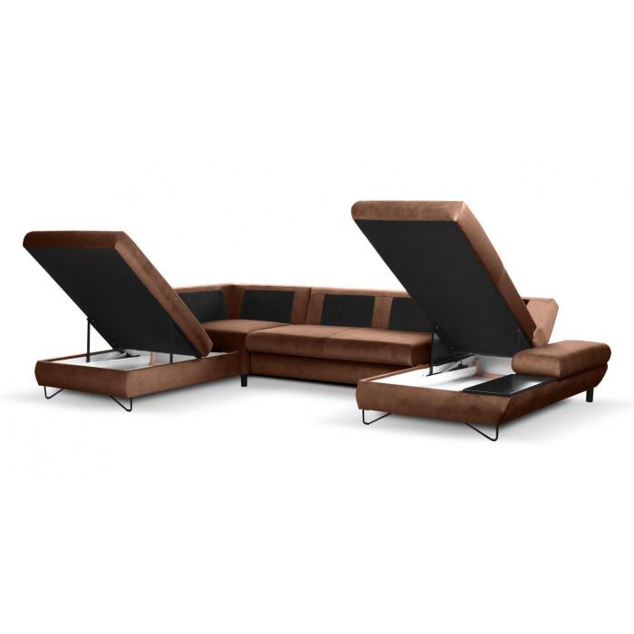 Sofa narożna Soft to najbardziej praktyczny mebel, który będzie pasował do salonu, ale znajdzie swoje miejsce również w innym pomieszczeniu. Nowoczesne narożniki rozkładane to doskonały wybór na długie lata. Funkcja spania to szczególnie ważne i świetne rozwiązanie, które zapewni miejsce snu w komfortowych warunkach. Powierzchnia spania wynosi 138x285cm. Soft posiada dwa pojemniki na pościel, a system rozkładania typu wózek to szybki, prosty i wygodny sposób rozkładania. Ogromnym atutem narożnika są regulowane podłokietniki, które można ułożyć według własnych preferencji.