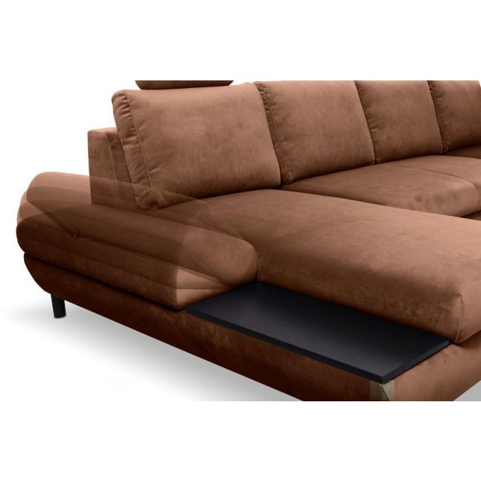 Sofa narożna Soft to najbardziej praktyczny mebel, który będzie pasował do salonu, ale znajdzie swoje miejsce również w innym pomieszczeniu. Nowoczesne narożniki rozkładane to doskonały wybór na długie lata. Funkcja spania to szczególnie ważne i świetne rozwiązanie, które zapewni miejsce snu w komfortowych warunkach. Powierzchnia spania wynosi 138x285cm. Soft posiada dwa pojemniki na pościel, a system rozkładania typu wózek to szybki, prosty i wygodny sposób rozkładania. Ogromnym atutem narożnika są regulowane podłokietniki, które można ułożyć według własnych preferencji.