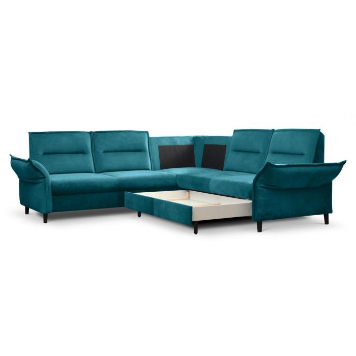 Sofa narożna Solano to najbardziej praktyczny mebel, który będzie pasował do salonu, ale znajdzie swoje miejsce również w innym pomieszczeniu. Nowoczesne narożniki rozkładane to doskonały wybór na długie lata. Funkcja spania to szczególnie ważne i świetne rozwiązanie, które zapewni miejsce snu w komfortowych warunkach. Powierzchnia spania wynosi 130x200cm. Solano posiada jeden pojemnik na pościel, a system rozkładania typu delfin to szybki, prosty i wygodny sposób rozkładania. Ogromnym atutem narożnika są regulowane podłokietniki, które można ułożyć według własnych preferencji.