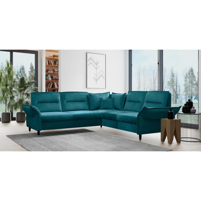 Kanapa narożna z kolekcji Solano jest w kształcie litery L i świetnie wpasuje się zarówno do pokoju dziennego jak i salonu.