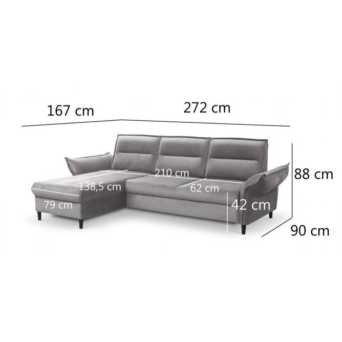 Sofa narożna Solano to najbardziej praktyczny mebel, który będzie pasował do salonu, ale znajdzie swoje miejsce również w innym pomieszczeniu. Nowoczesne narożniki rozkładane to doskonały wybór na długie lata. Funkcja spania to szczególnie ważne i świetne rozwiązanie, które zapewni miejsce snu w komfortowych warunkach. Powierzchnia spania wynosi 129x210cm. Solano posiada jeden pojemnik na pościel, a system rozkładania typu wózek to szybki, prosty i wygodny sposób rozkładania. Ogromnym atutem narożnika są regulowane podłokietniki, które można ułożyć według własnych preferencji.