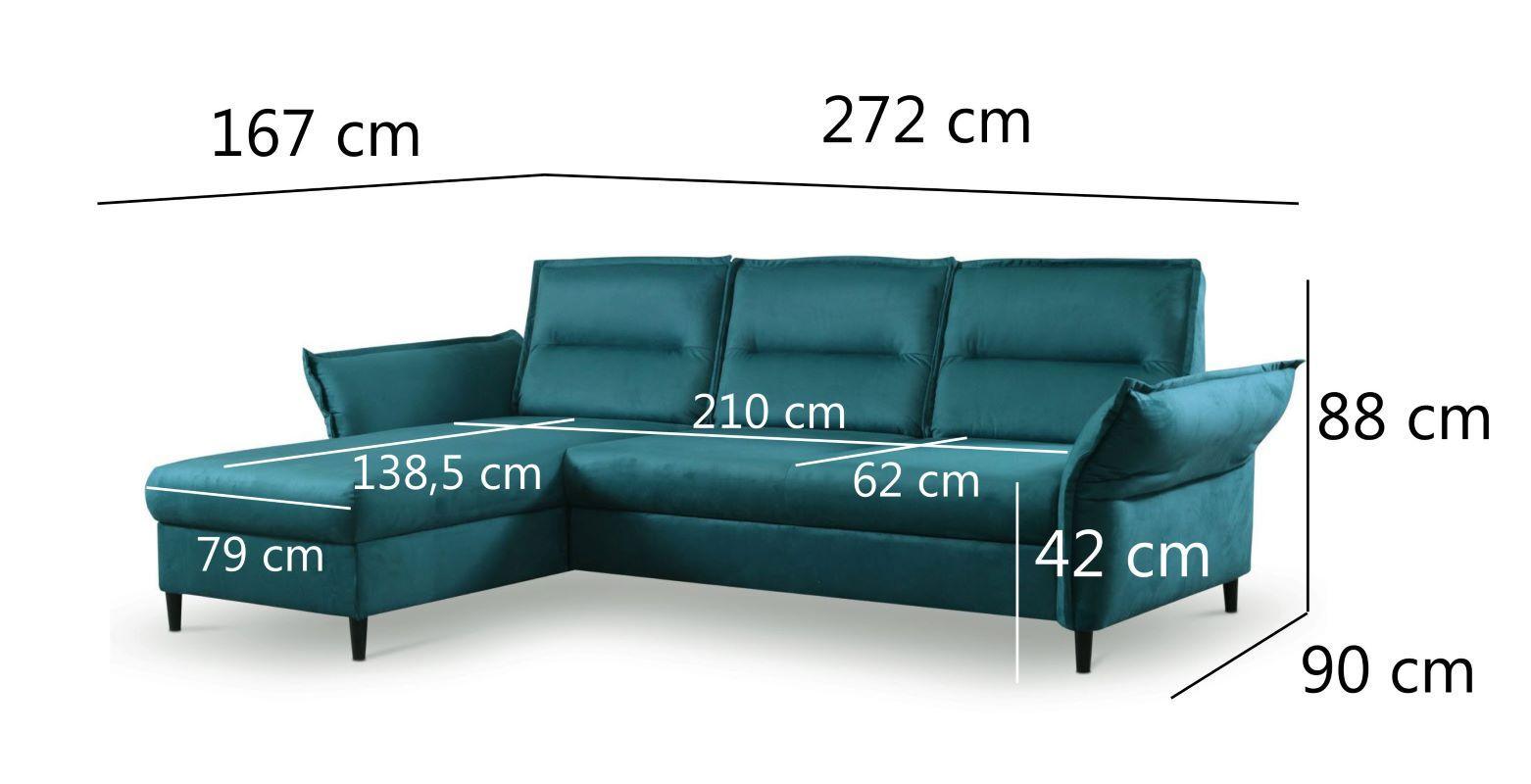 Kanapa narożna z kolekcji Solano jest w kształcie litery L i świetnie wpasuje się zarówno do pokoju dziennego jak i salonu.