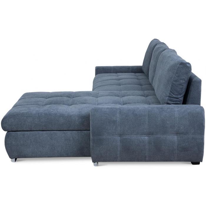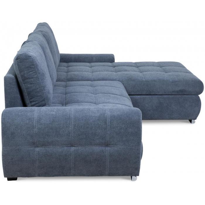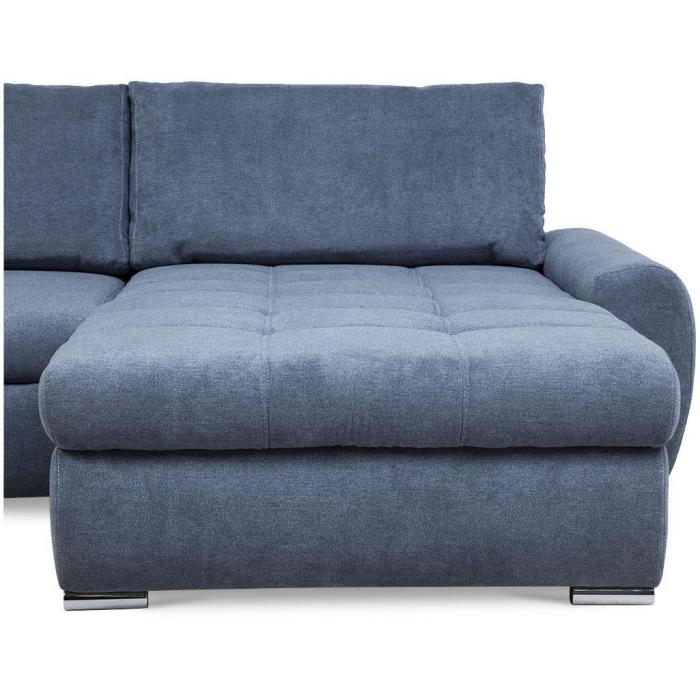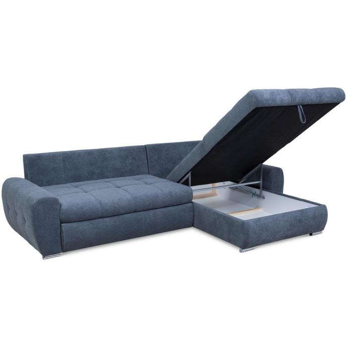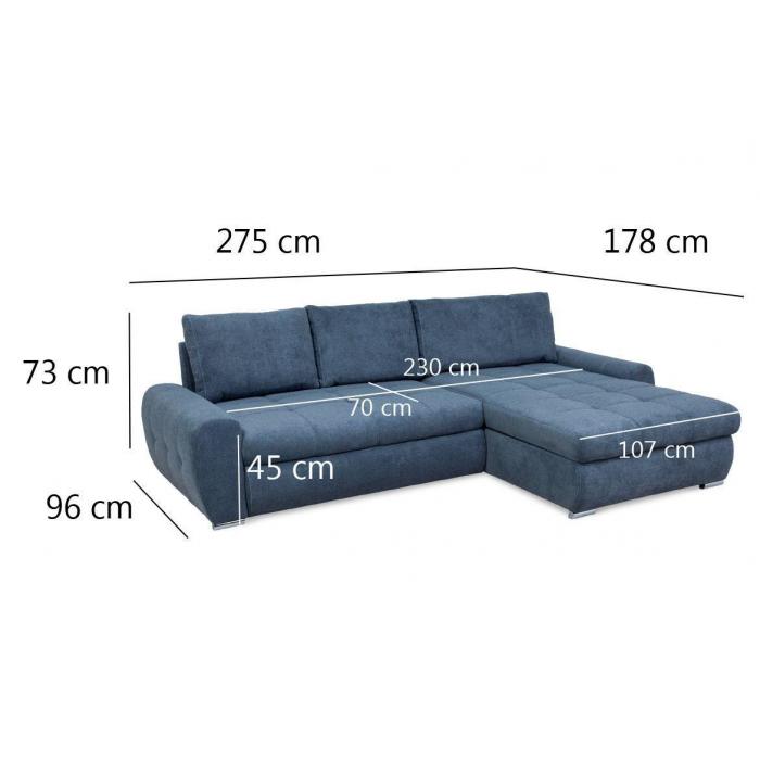 Sofa narożna posiada pojemnik na pościel, w którym zmieszczą się kołdry zachowując porządek w pomieszczeniu. Narożnik z funkcją spania wyposażony w sprężyny faliste oraz wygodne oparcie zadowoli nawet najbardziej wymagających miłośników wielogodzinnych drzemek. Wysokość siedziska wynosi 45cm.
