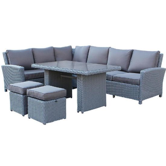 Komplet mebli technorattanowych to idealne rozwiązanie do każdego ogrodu czy na taras gdzie z przyjemnością spędzisz wszystkie letnie popołudnia i weekendy wraz ze znajomymi czy rodziną. Blat stolika jest wytrzymały, wykonany bowiem ze szkła hartowanego, konstrukcja z kolei jest metalowa.