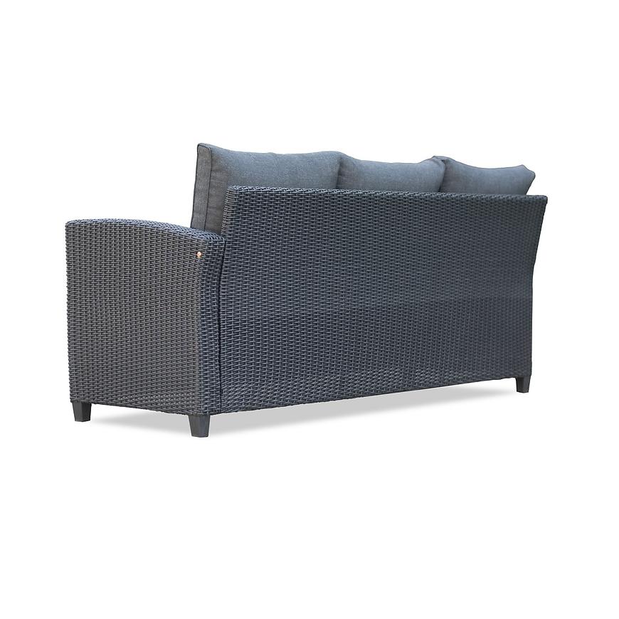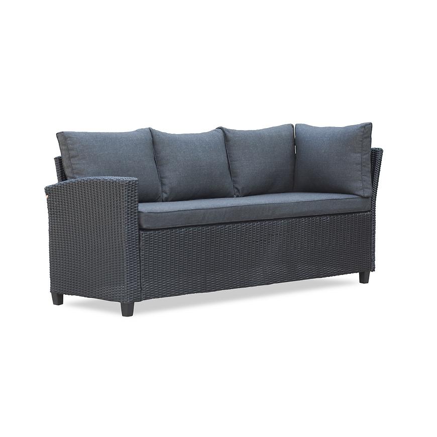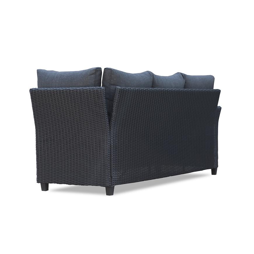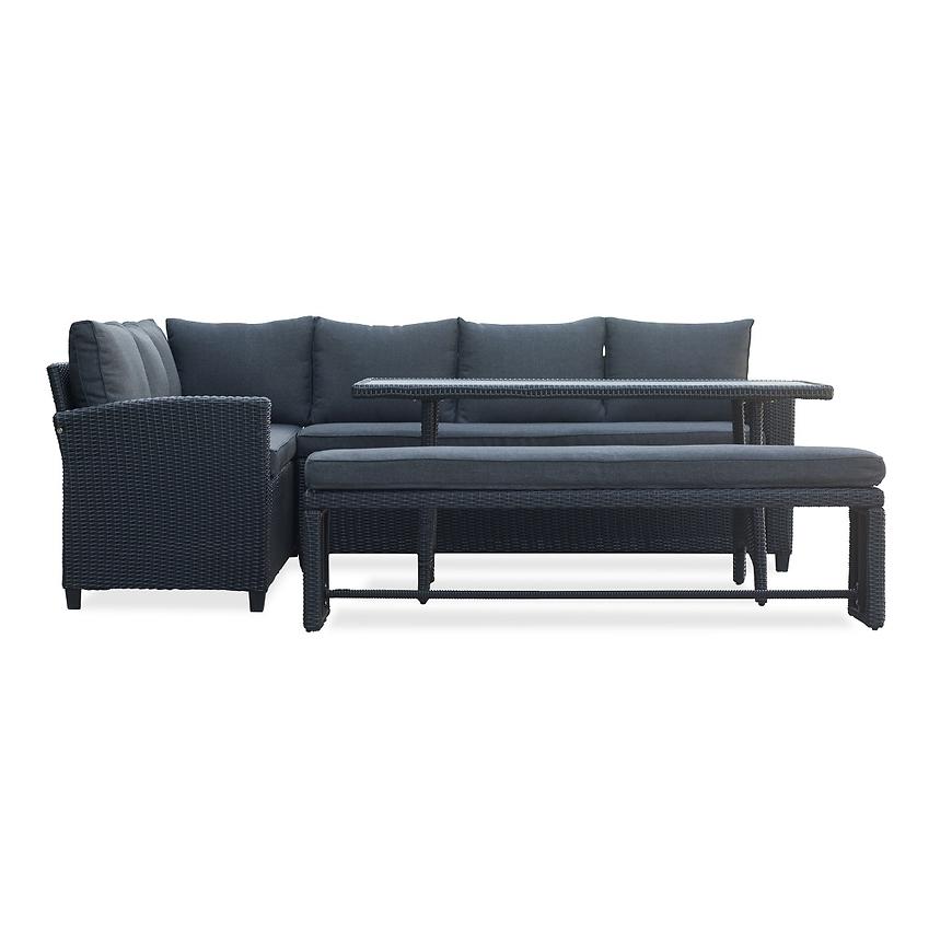 Meble wykonane są z wysokiej jakości technorattanu w kolorze czarnym, który nie tylko imituje naturalny rattan, ale także jest lekki, odporny na warunki atmosferyczne i łatwy w utrzymaniu. Dzięki uniwersalnej stronie narożnika, można go łatwo dostosować do indywidualnych preferencji aranżacyjnych.