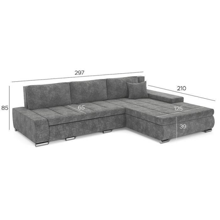 Duży narożnik Toscania to elegancja, wygoda i funkcjonalność. Narożnik rozkładany to mebel idealny dla rodzin, które cenią sobie wspólny wypoczynek na sofie. Nowoczesny narożnik z funkcją spania okazjonalnego wyposażony w wygodne oparcie zapewni wysoki komfort nawet najbardziej wymagającym miłośnikom wielogodzinnych drzemek. Kanapa narożna z pojemnikiem to idealne rozwiązanie, które świetnie sprawdzi się w każdym domu. Narożnik tapicerowany możesz ustawić w salonie lub innym pomieszczeniu. Meble wypoczynkowe wyposażone w funkcję spania okazjonalnego to doskonały wybór na długie lata.
