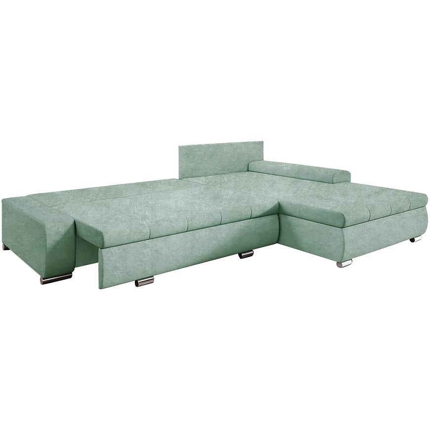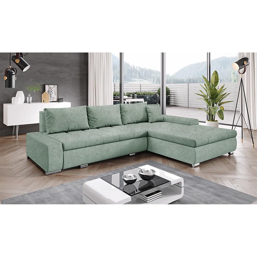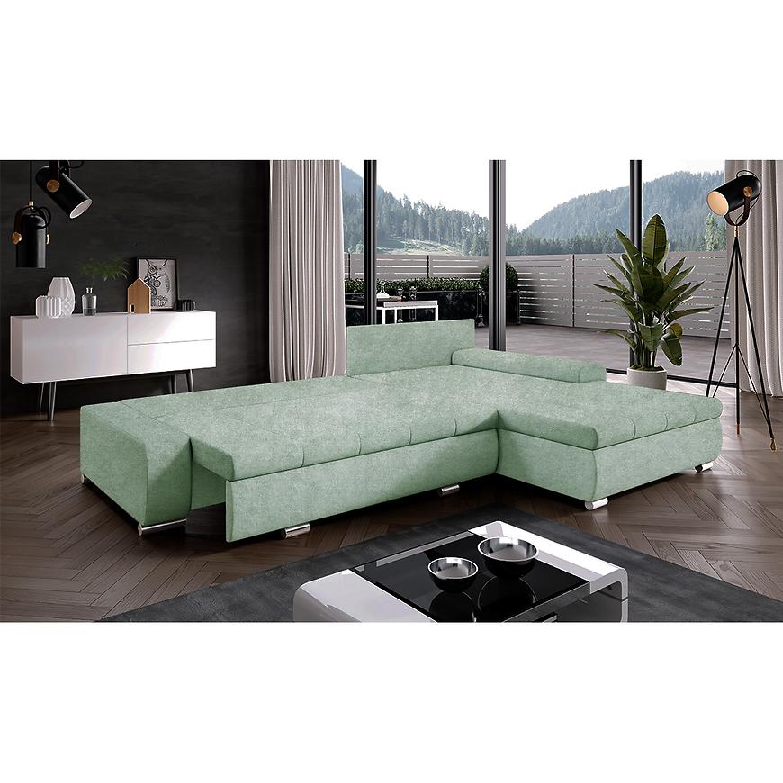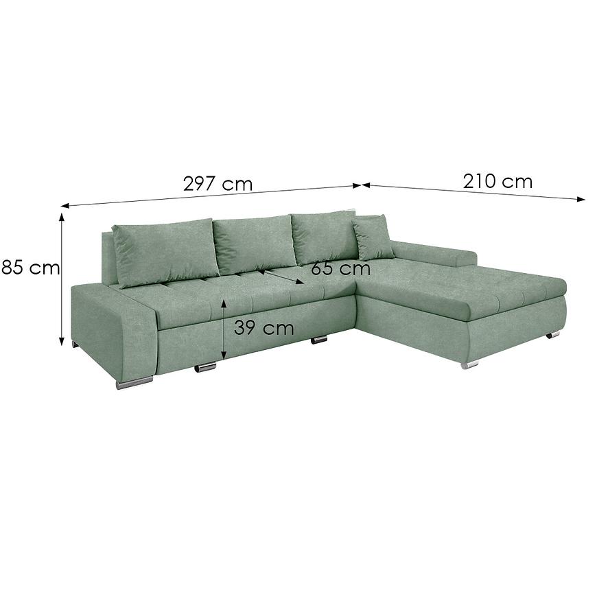 Wyposażony w sprężynę falistą zarówno w siedzisku, jak i jako główne wypełnienie, oferuje wysoki komfort siedzenia i relaksu. Uniwersalna orientacja sprawia, że narożnik można łatwo dopasować do układu pomieszczenia – niezależnie od strony ustawienia.