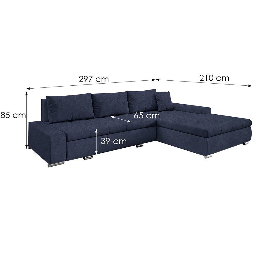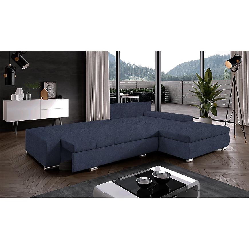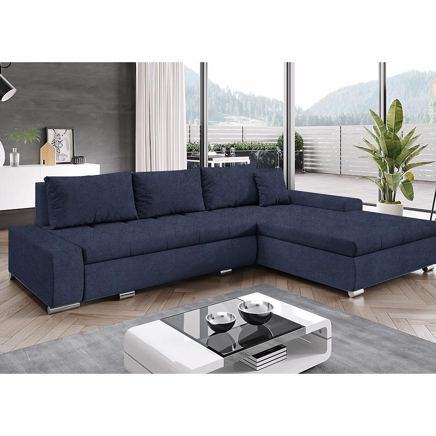Wyposażony w sprężynę falistą zarówno w siedzisku, jak i jako główne wypełnienie, oferuje wysoki komfort siedzenia i relaksu. Uniwersalna orientacja sprawia, że narożnik można łatwo dopasować do układu pomieszczenia – niezależnie od strony ustawienia.