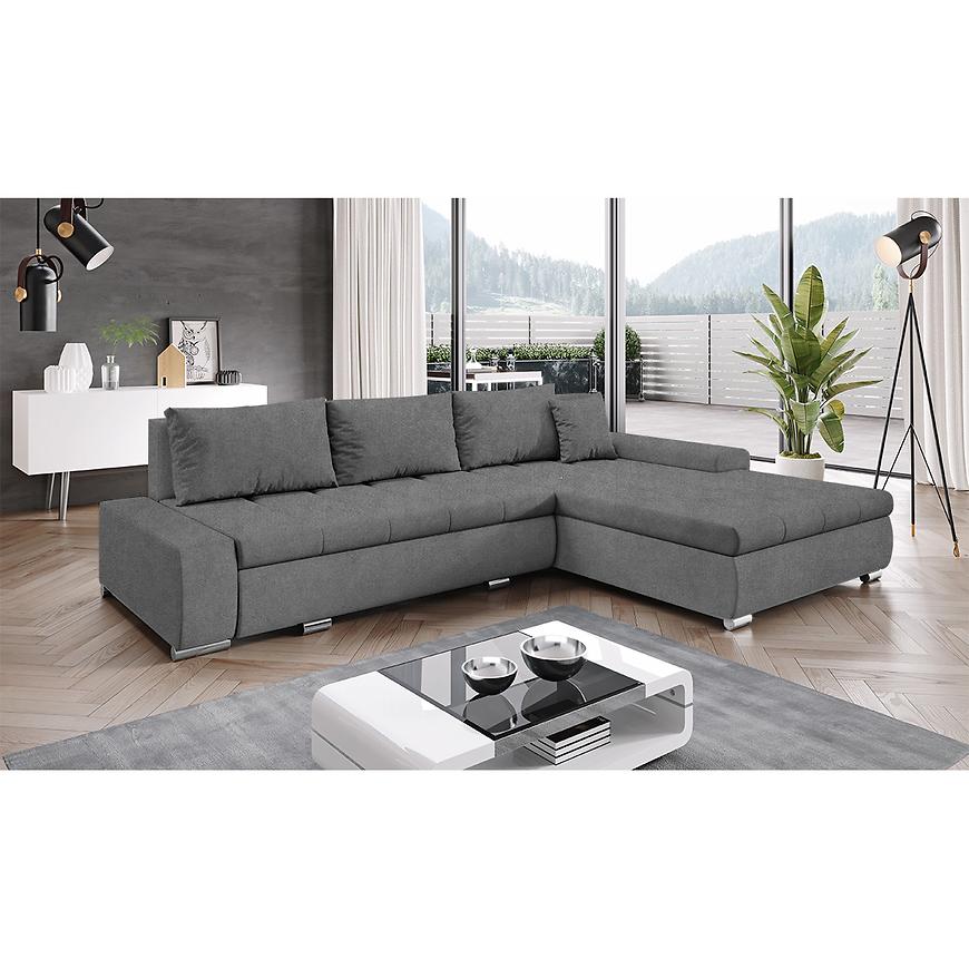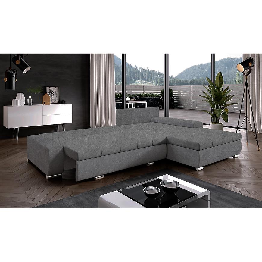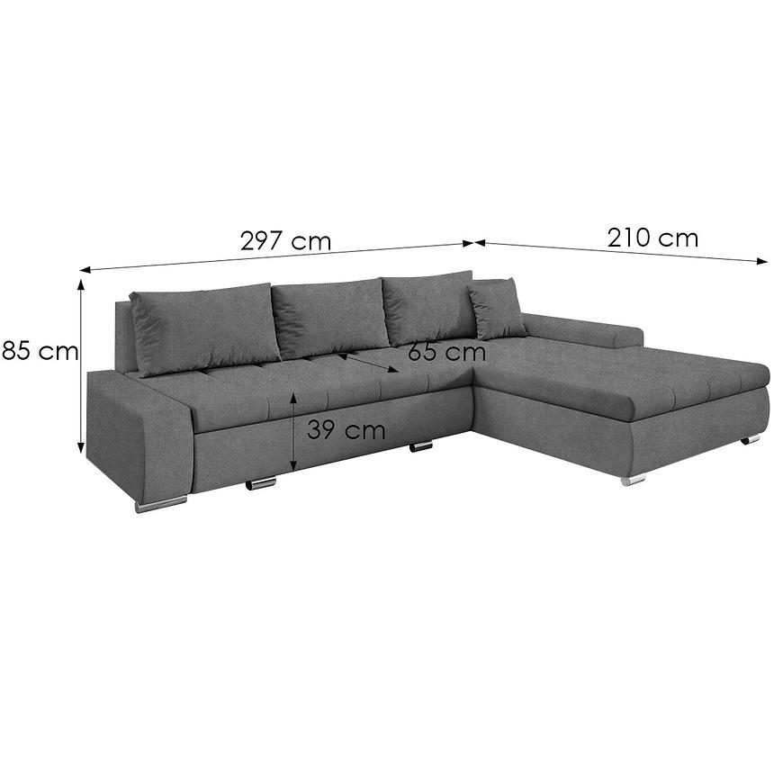 Wyposażony w sprężynę falistą zarówno w siedzisku, jak i jako główne wypełnienie, oferuje wysoki komfort siedzenia i relaksu. Uniwersalna orientacja sprawia, że narożnik można łatwo dopasować do układu pomieszczenia – niezależnie od strony ustawienia.