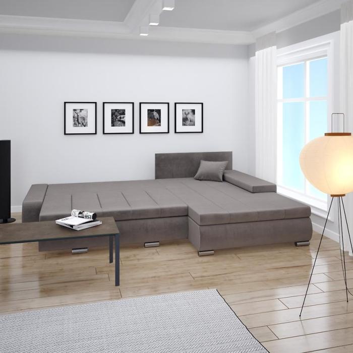 Duży narożnik Toscania to elegancja, wygoda i funkcjonalność. Narożnik rozkładany to mebel idealny dla rodzin, które cenią sobie wspólny wypoczynek na sofie. Nowoczesny narożnik z funkcją spania okazjonalnego wyposażony w wygodne oparcie zapewni wysoki komfort nawet najbardziej wymagającym miłośnikom wielogodzinnych drzemek. Kanapa narożna z pojemnikiem to idealne rozwiązanie, które świetnie sprawdzi się w każdym domu. Narożnik tapicerowany możesz ustawić w salonie lub innym pomieszczeniu. Meble wypoczynkowe wyposażone w funkcję spania okazjonalnego to doskonały wybór na długie lata.