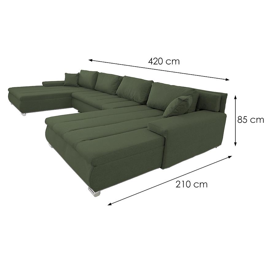 Siedzisko wypełnione sprężyną falistą gwarantuje wysoki komfort wypoczynku, a funkcja spania okazjonalnego i duża powierzchnia 152x342 cm sprawiają, że narożnik idealnie sprawdza się również jako miejsce do spania dla domowników lub gości. Wbudowany pojemnik na pościel pozwala przechowywać kołdry i poduszki, a w zestawie znajdują się również dopasowane poduszki. Chromowane nóżki dodają elegancji i nowoczesnego charakteru, a solidna konstrukcja zapewnia stabilność i trwałość przez długie lata.
