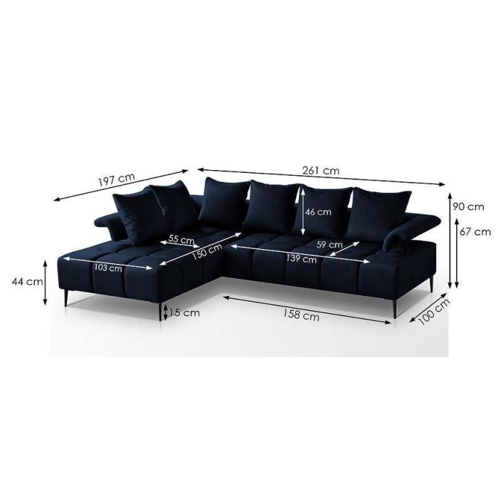 Narożnik Vanessa został pokryty tkaniną. W siedzisku zastosowano sprężynę falistą, która dostosowuje się do ciężaru i kształtu ciała, zapewniając tym samym wysoki komfort siedzenia. Ten niepowtarzalny mebel wypoczynkowy stworzono z myślą o funkcjonalności i eleganckim wyglądzie. Narożnik dostępny w wersji prawostronnej i lewostronnej.